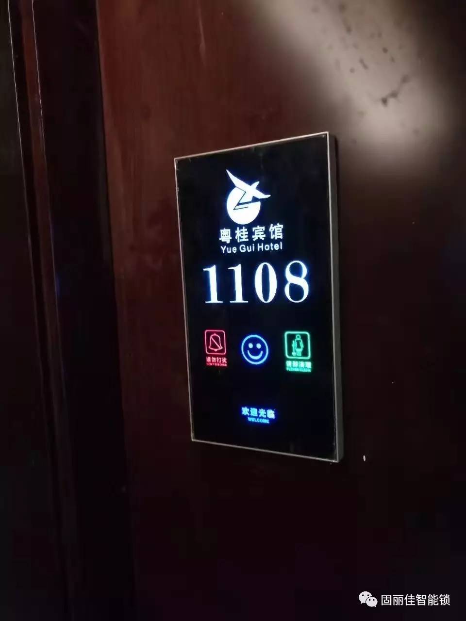 廣州粵桂賓館此次升級裝修與我們固麗科技合作安裝了固麗佳GLJ8928-FH的新穎高端款酒店電子門鎖與配套的定制電子門顯,此款酒店鎖是可以根據(jù)酒店要求定制LOGO,起到更好的展示作用;同時背面的面板設(shè)計也更加利于以后更換電池,加上精美的定制電子門顯使得酒店顯得更加的高端智能化。