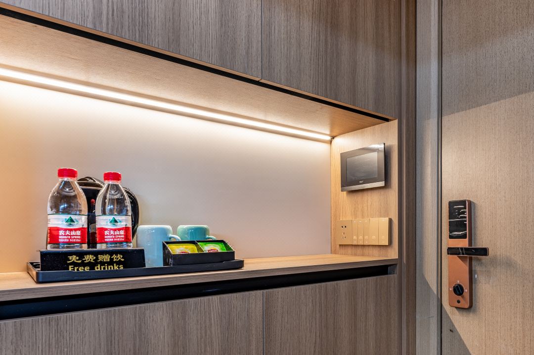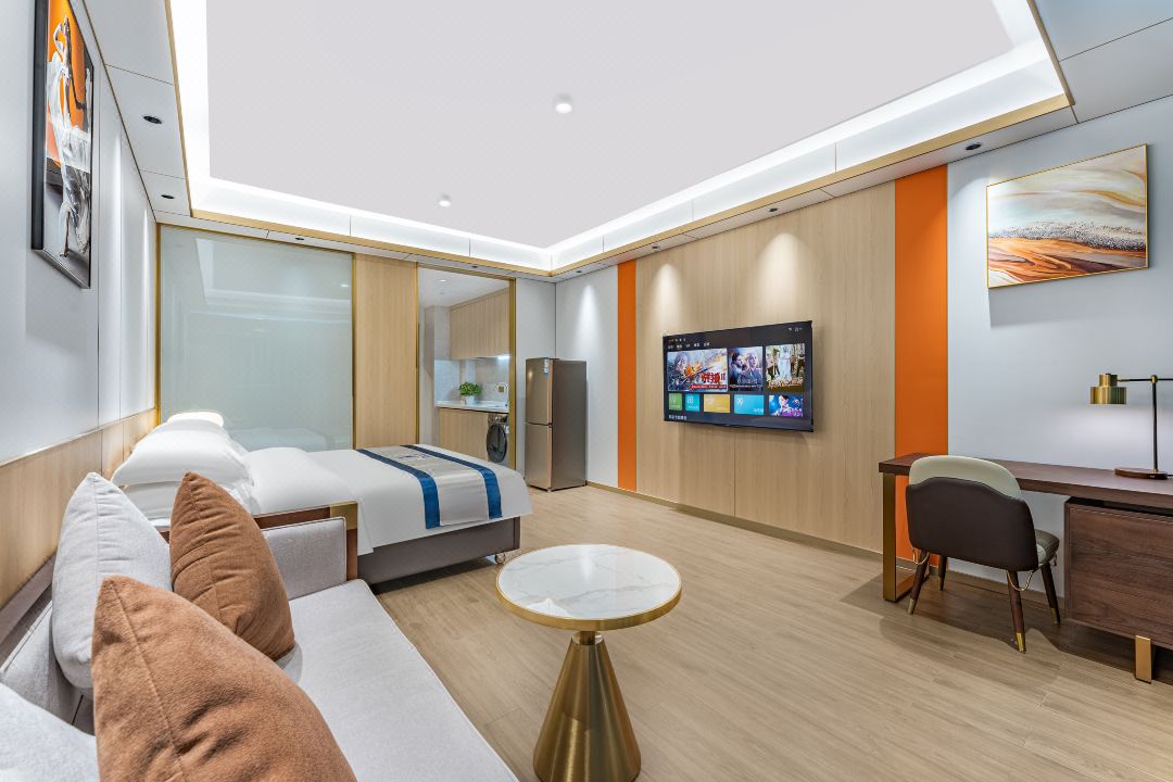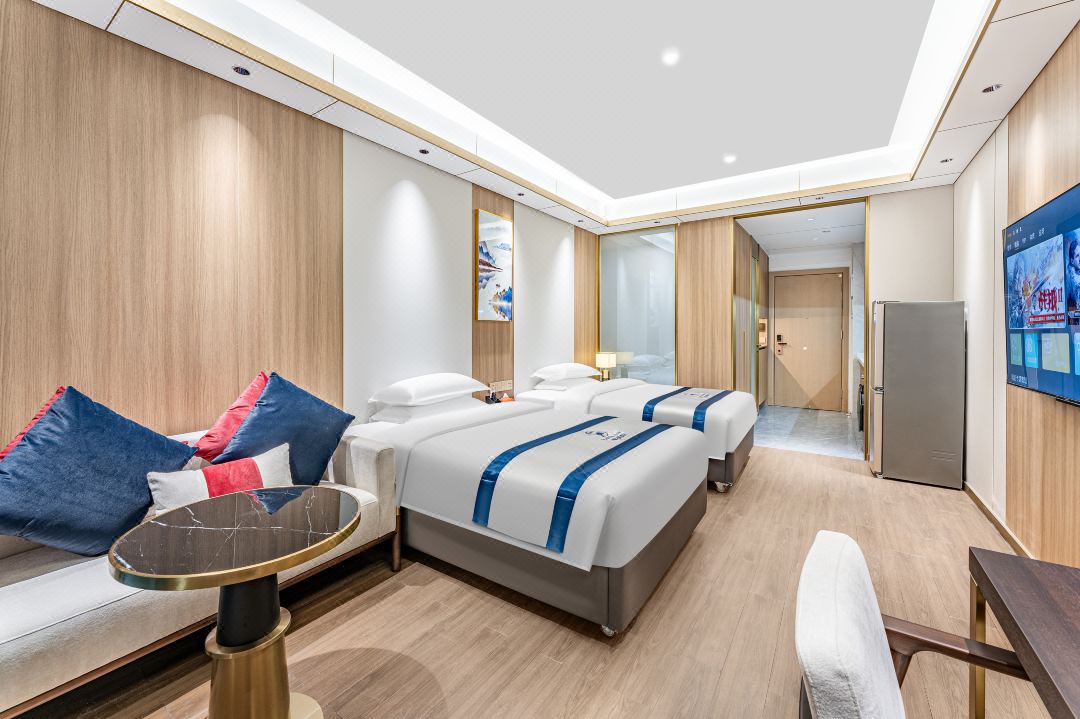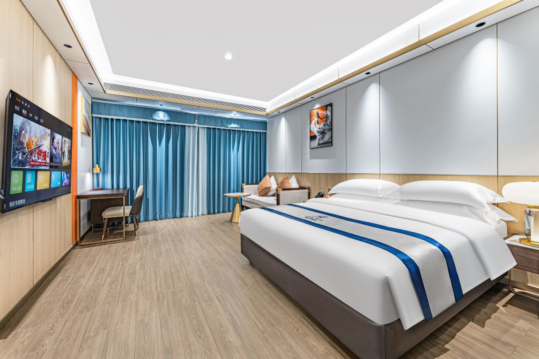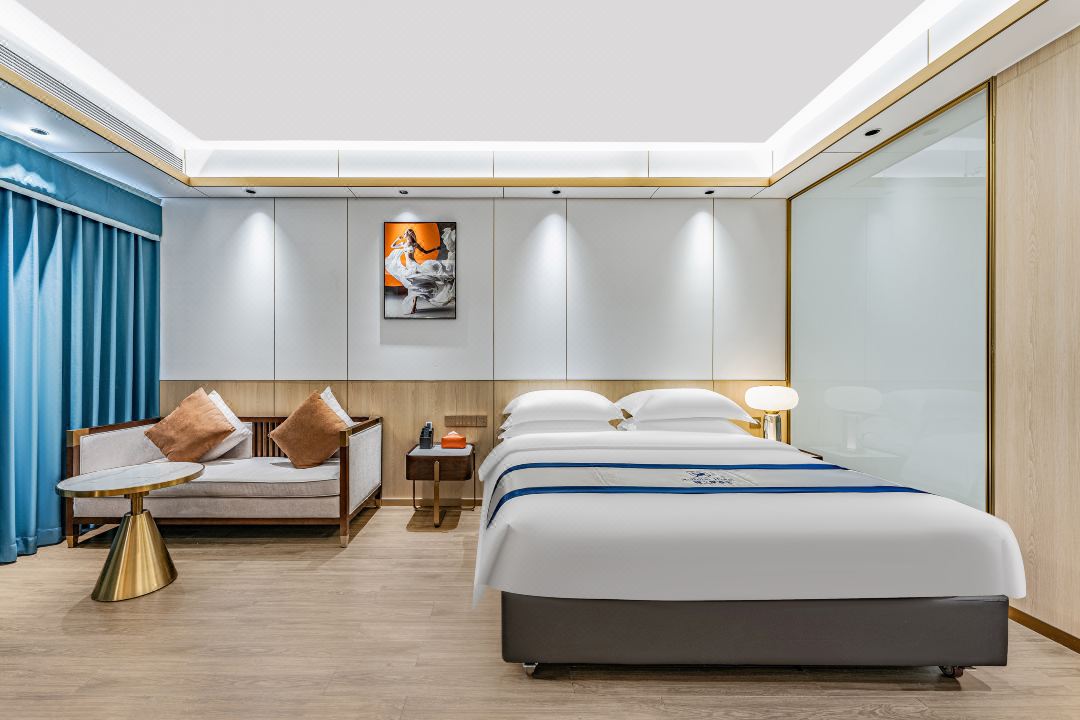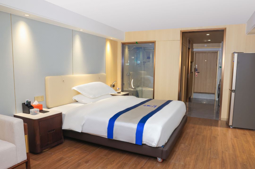 禧之萊酒店采用無甲醛高端材質(zhì)裝潢,標(biāo)配全智能語音,極力打造體驗(yàn)式的居住環(huán)境,酒店配有會(huì)議,豪華的餐飲包房及包間,房間內(nèi)設(shè)有洗衣機(jī),冰箱生活配套設(shè)施,讓您新體驗(yàn)品質(zhì)和服務(wù)于一體的高端感受。       禧之萊酒店注重客房的舒適度與功能性。每間客房都設(shè)計(jì)得既現(xiàn)代又溫馨,確保了空間的整潔與明亮。