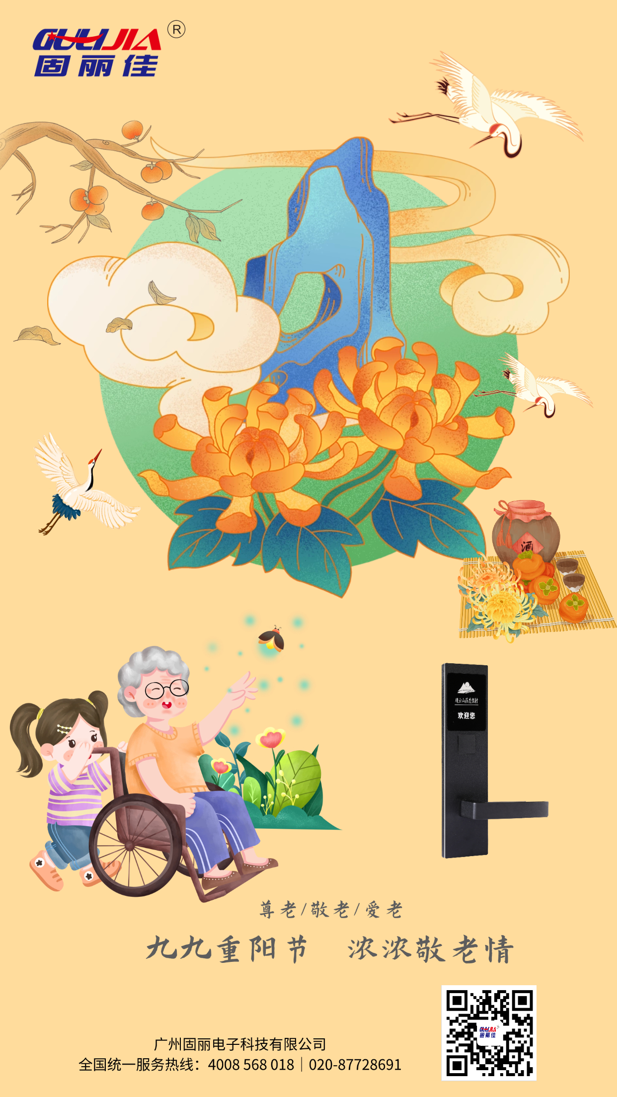 重陽節(jié),又稱重九節(jié)、茱萸節(jié)、登高節(jié)、敬老節(jié),時(shí)間在每年的農(nóng)歷九月初九,是中國(guó)慶祝豐收、祈福長(zhǎng)壽、孝老思親的節(jié)日。《易經(jīng)》中將“九”定為陽數(shù),九月九日,日月并陽,故稱“重陽”。固麗佳全體同仁祝大家身體健康,開心長(zhǎng)壽,歲歲安康!