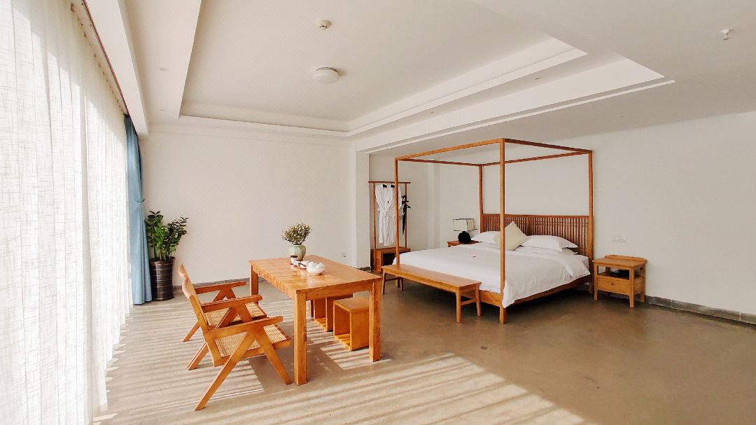 民宿的房間布置很精致雅觀,綠色窗臺顯得洋氣,桌、椅、床、凳充滿了復(fù)古的氣息。