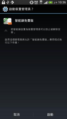 市面上有不少可以鎖住或隱藏重要資料與照片的APP軟件,這些軟件不但好用,而且功能也非常強大大。不過常使用的人一定知知道這些軟件的致命缺點,就是只要軟件一移除,就什么防護效果都沒了。所以今天小弟要推擠=一款可以將隱私軟件設(shè)為管理者權(quán)限,避免因移除了失去防護功能的免費APP軟件-「智能鎖」。強化了管理者權(quán)限的隱私鎖,相信一定更能讓你用的安心喔。